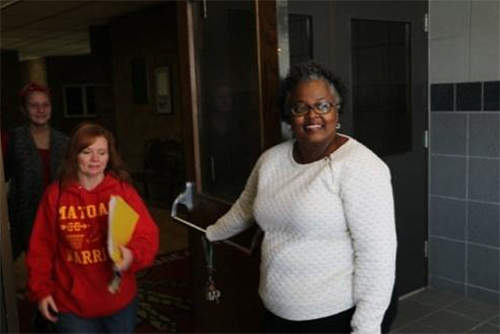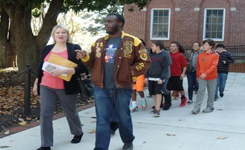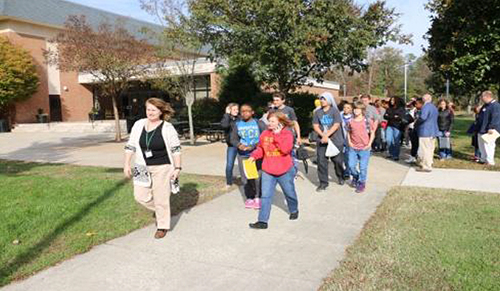 In the fall of 2015, the students visited Richard Bland College and Virginia State University. For many of the students, it was the first time visiting a college campus. Our fervent hope is that we have PLANTED A SEED. We hope that most if not all of the students will want to attend college and will thus DO THE WORK NECESSARY over the next seven or eight years to get there. The tours were co-sponsored by MMHMF and the Ettrick Neighborhood and Business Foundation (ENBF) and Nancy Ross. MMHMF is grateful to Ms. Ross, ENBF Vice President, and the other members for providing major support for the foundation's outreach program. We thank Vice Principal Gayle Sutton and the Motoaca Middle School staff and faculty for their cooperation, enthusiasm and support. Special thanks also to the student volunteers and staffs of Richard Bland and Virginia State for helping to make the tours exciting and a valuable experience for these students! Below, Vice Principal Sutton (on right in the top left picture), holds the door as school staff lead the way to buses departing for the College. Richard Bland staff (top right photo) greet students on arrival.