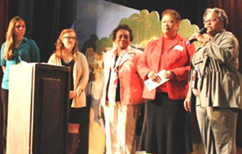 School Vice-Principal Gayle Sutton (far right) acknowledged Outreach Committee Co-Chairs, Ann Henderson (middle) and Barbara Crews (2nd from right) who attended the play I HAVE A DREAM that was performed by the Virginia Repertory Theatre of Richmond, VA. at the school's east campus in March. The Foundation covered the ... Read More ➤
