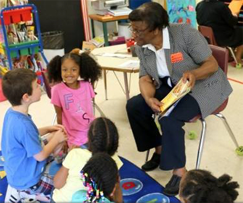 Volunteers confess that they enjoy the experience as much if not more so than the students! MMHMF members were joined by community volunteers including the Virginia State University Women's Basketball team and Athletic Department sfaffers. Readers: Outreach member Sarah Cheatham (left); Gloria Knight (middle photo); and from left to ... Read More ➤